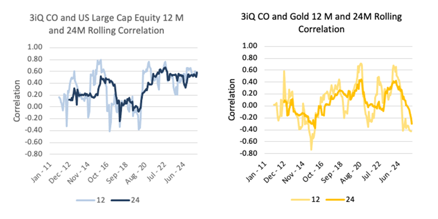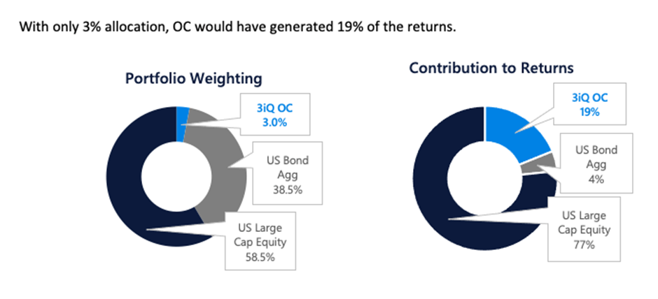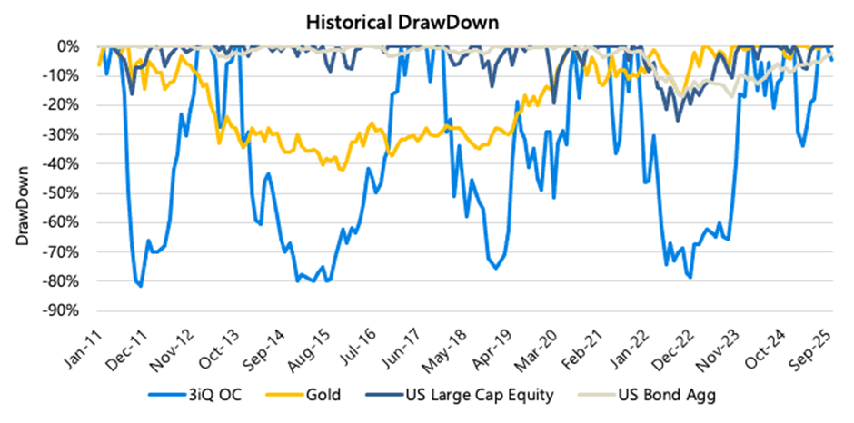 Within a broader portfolio, OC is intended to function as a flexible return driver. At times its behavior has aligned more closely with equity markets, while at other points it has exhibited characteristics closer to gold.